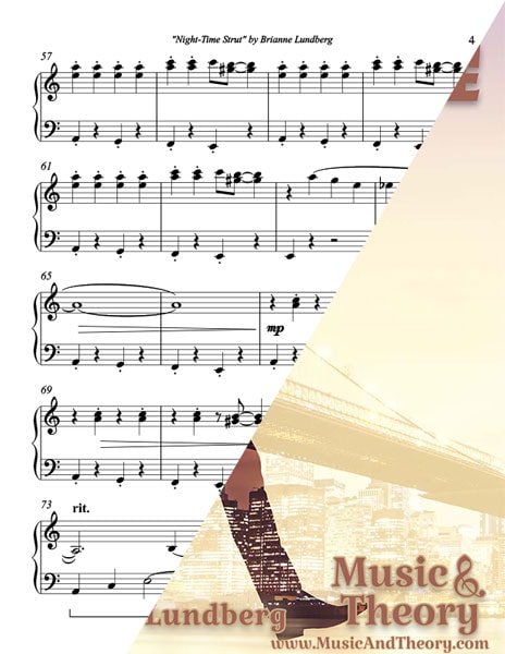 Go out for a night-time strut, and feel like you own the world! This easy jazz piano piece was written for late beginner to early intermediate level. With syncopation, staccato, a walking bass line, and blues scales, it’s a lot of fun to play (especially during Halloween season) and makes a great choice for a jazz piano recital piece!